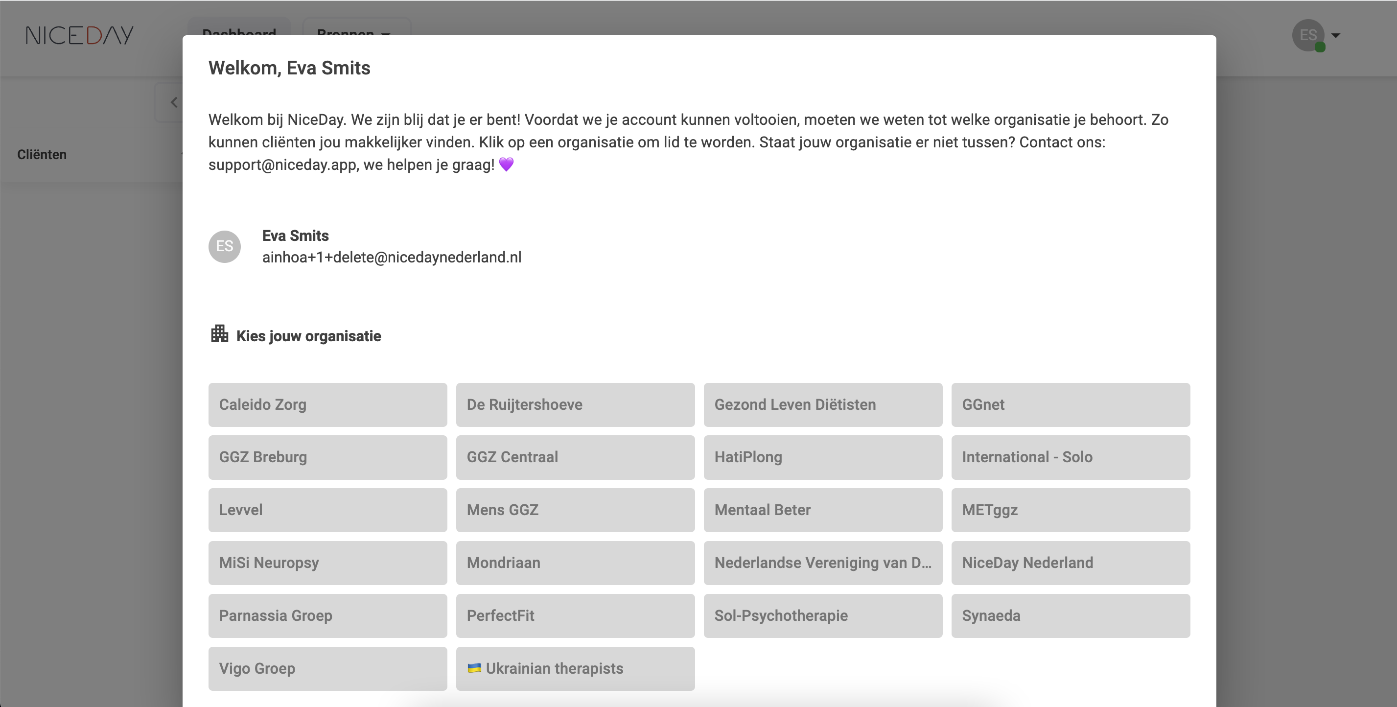 (Regie)Behandelaren, administratie- of secretariaat medewerkers, verpleegkundigen, diëtisten en/of psychiaters, kunnen gekoppeld worden aan jouw organisatie door de beschreven stappen te volgen om een nieuw NiceDay account te maken.